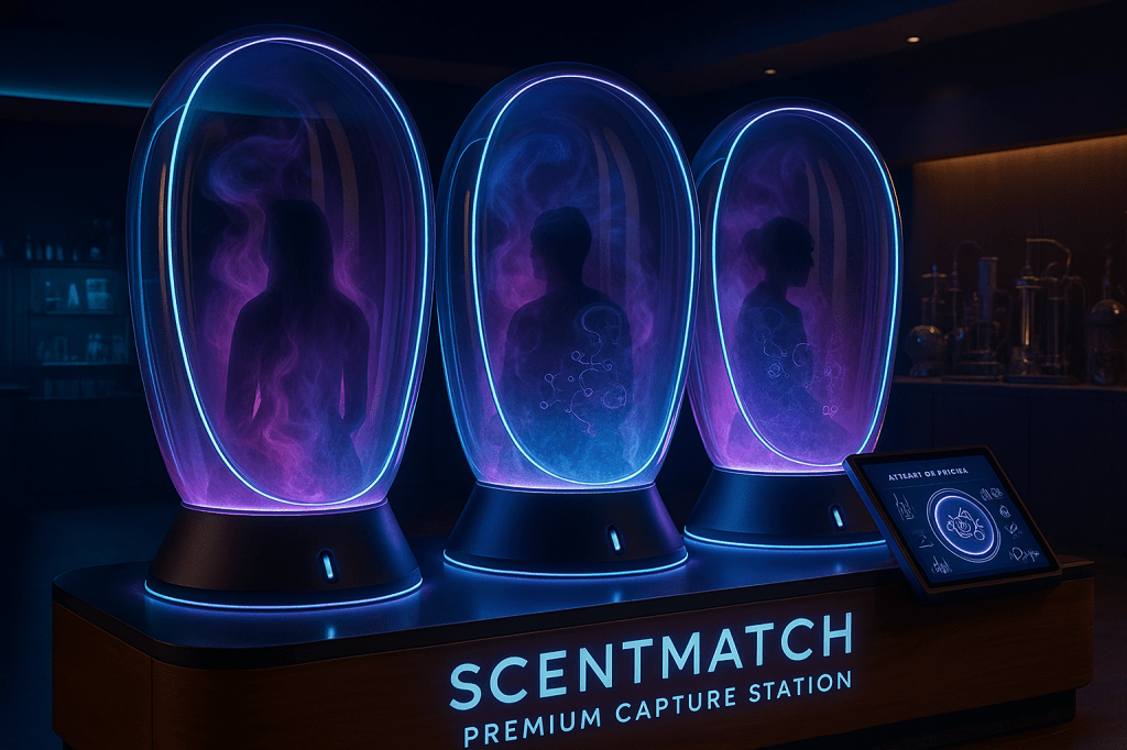 ScentMatch™ launches with twenty Premium Capture Stations across four major metropolitan areas, located in upscale venues including high-end fitness clubs, exclusive co-working spaces, and luxury cafes. These stations provide the comprehensive analysis that powers enhanced ring functionality and creates detailed compatibility profiles.